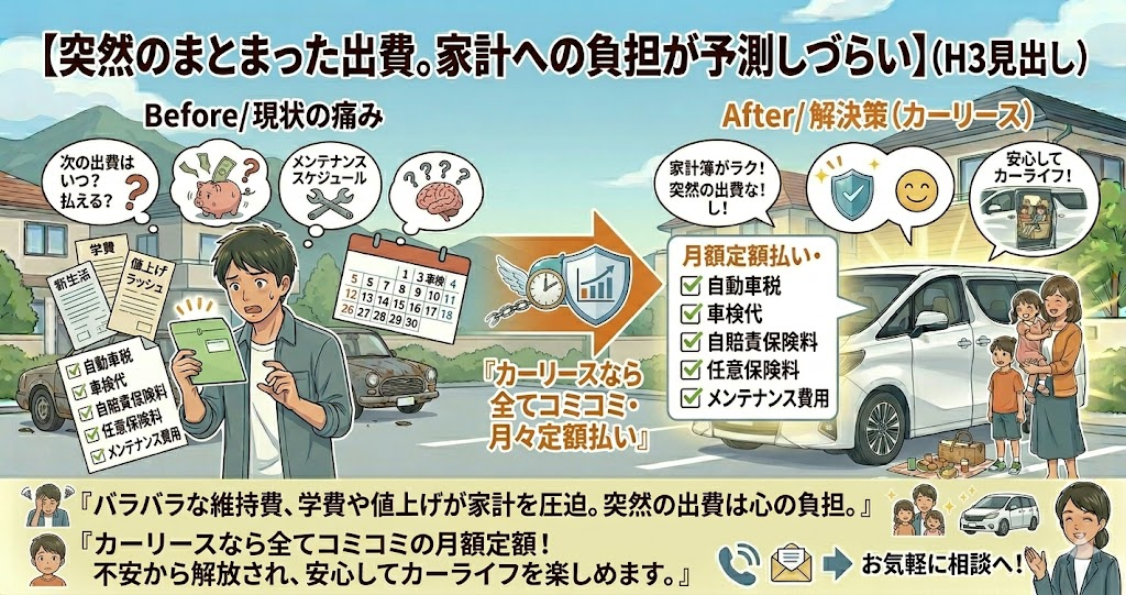 それらをカーリースでスッキリ解消して、身軽で、自分らしいカーライフを楽しみましょう!