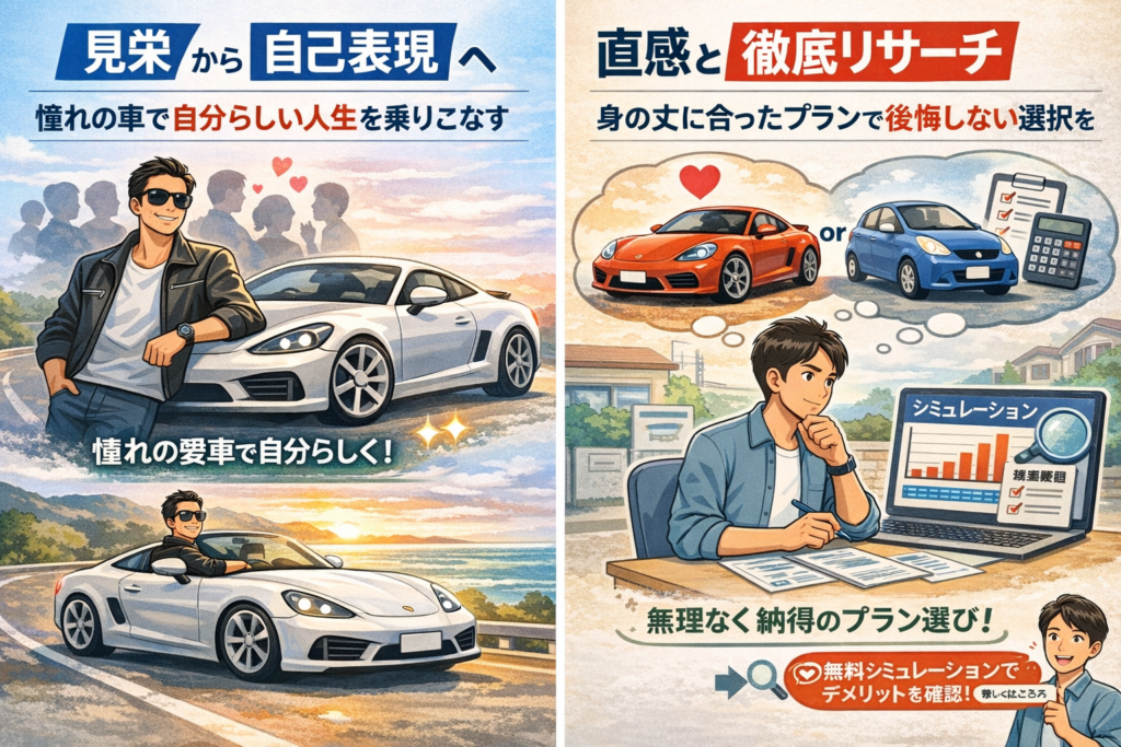 大切なのは、それが単に他人の目を気にするためではなく、あなたが『憧れの車に乗っている自分』に自信を持ち、あなた自身を魅力的に『自己表現』するためであること。