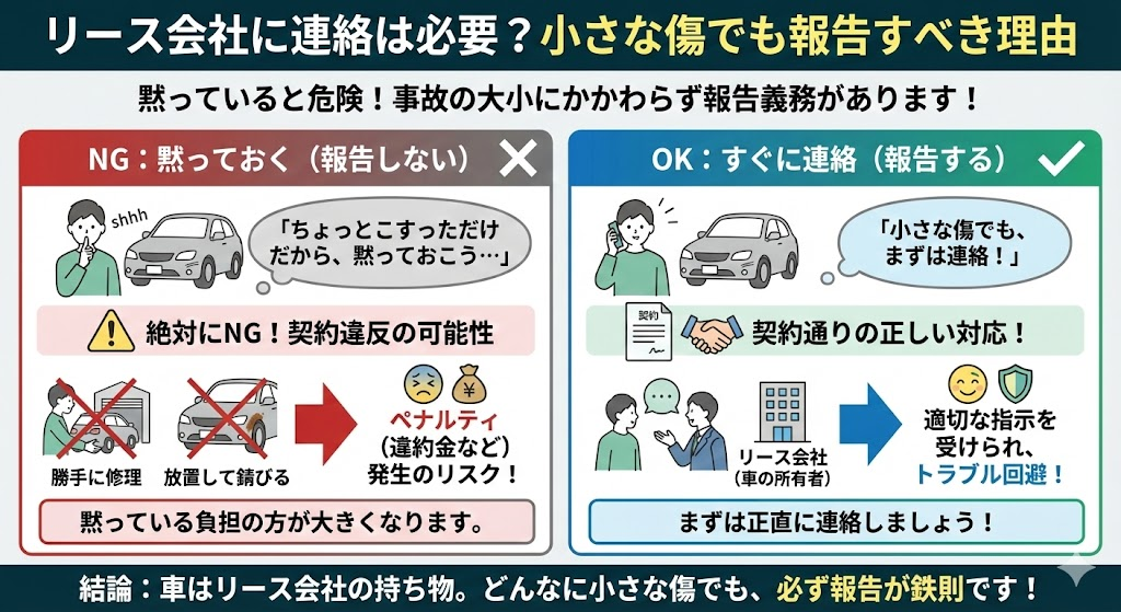 リース会社に連絡は必要?小さな傷でも報告すべき理由