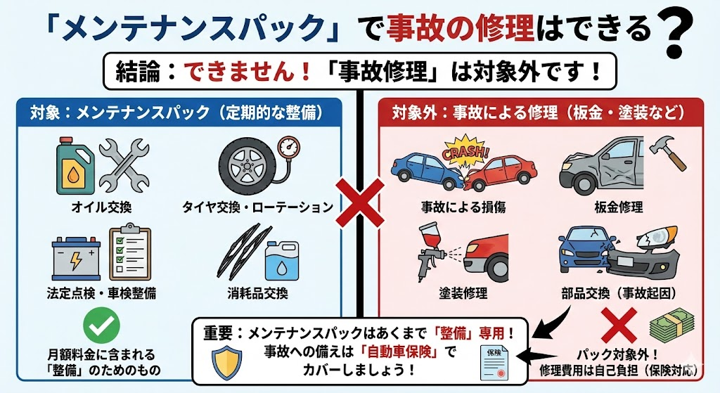 「メンテナンスパック」で事故の修理はできる?