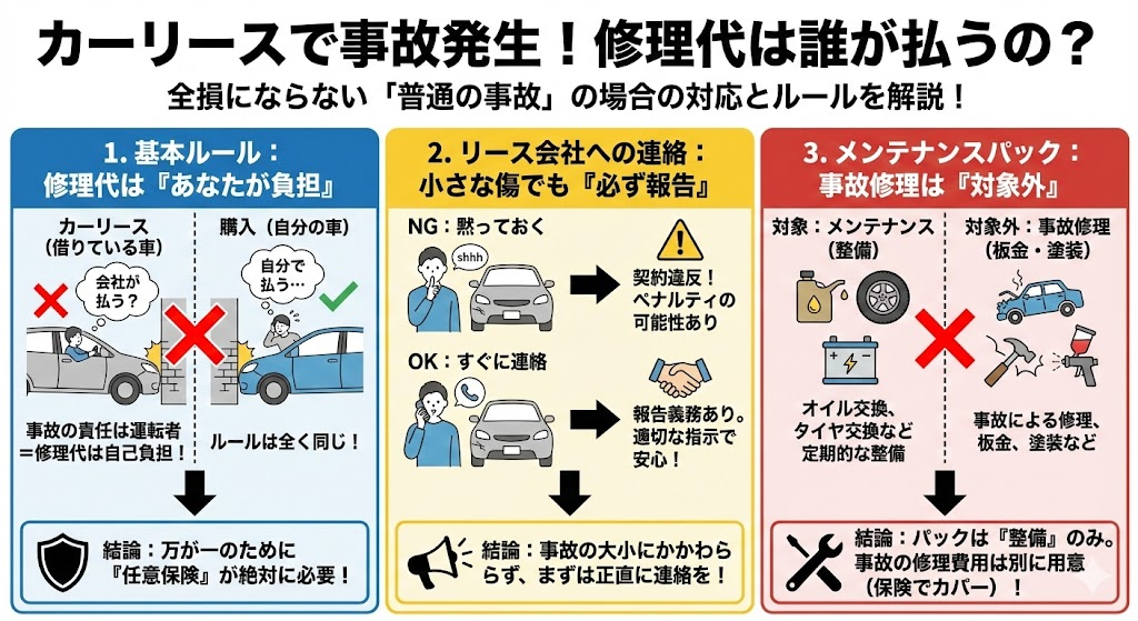 カーリースの契約では、事故の大小にかかわらず、