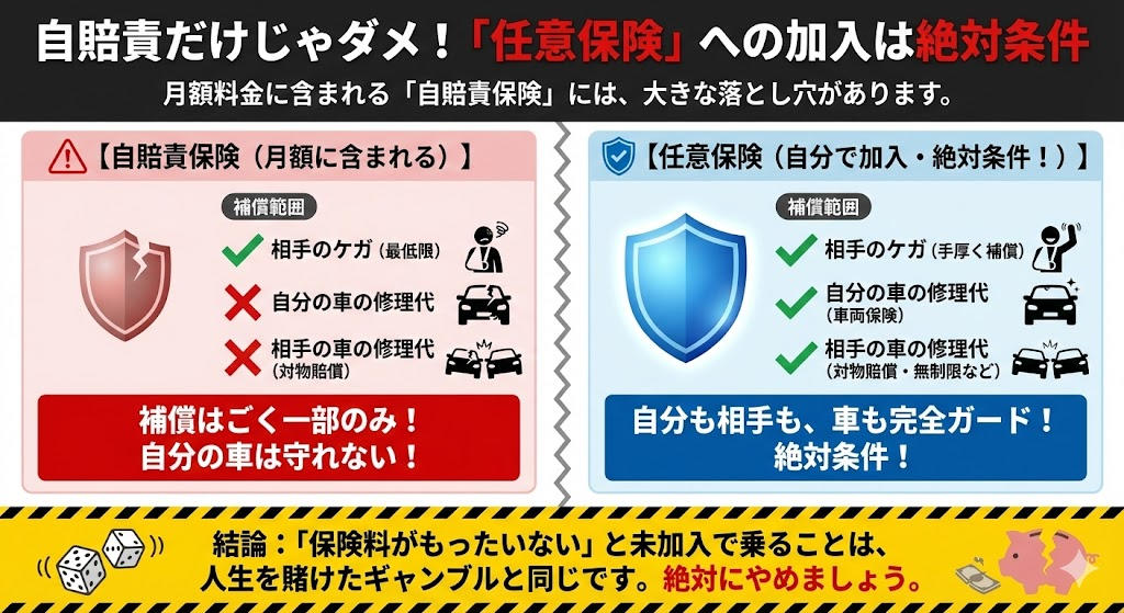 自賠責だけじゃダメ!「任意保険」への加入は絶対条件