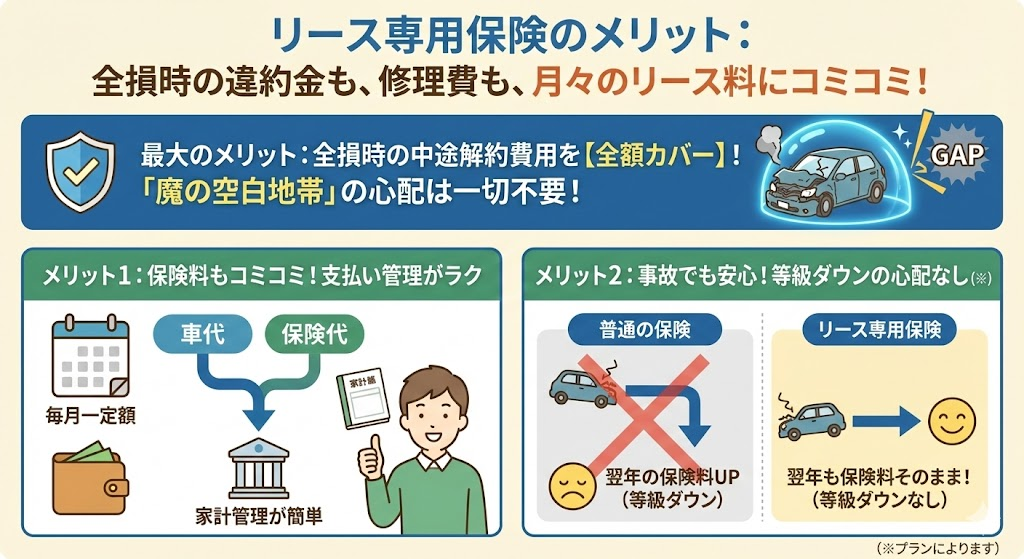 この専用保険の最大のメリットは、もちろん「全損時の中途解約費用が全額カバーされる」ことです。