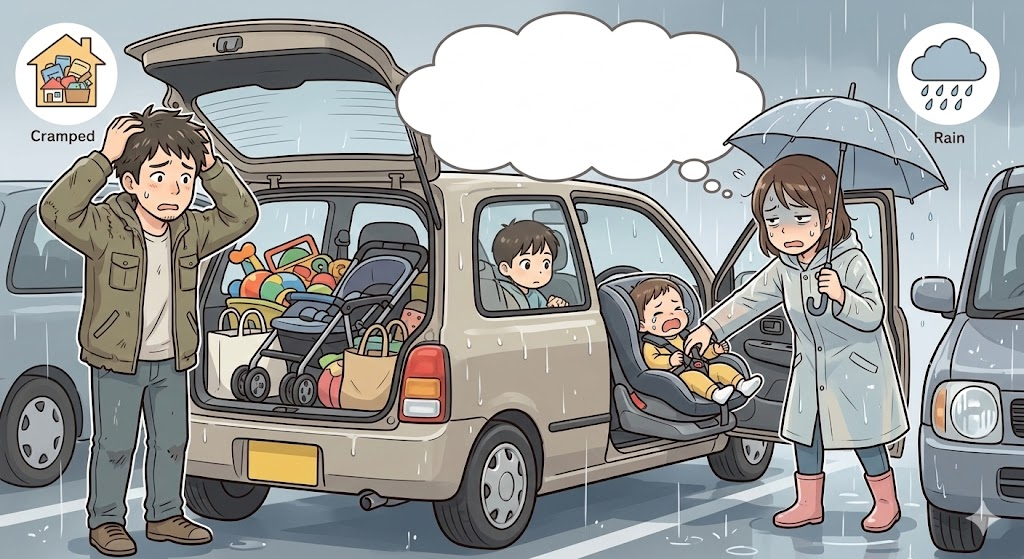 「雨の日のチャイルドシートの乗せ降ろし、スライドドアだったらどんなに楽か…」