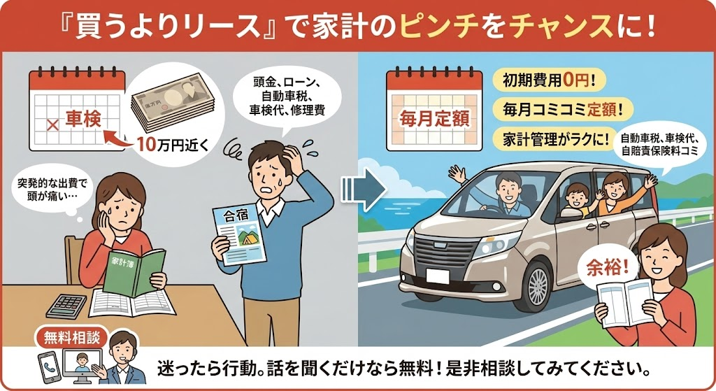 という見通しが立つため、家計管理が格段にラクになるのが、買うよりリースが選ばれる理由です。