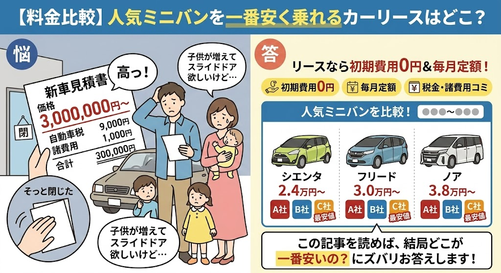 【料金比較】人気ミニバンを一番安く乗れるカーリースはどこ?