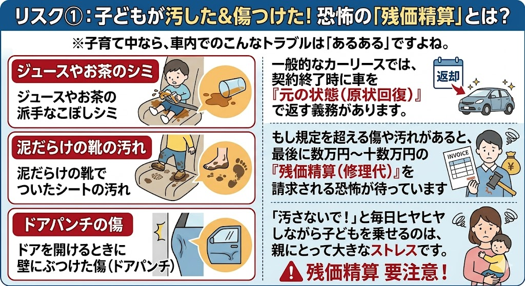 リスク①:子どもが汚した&傷つけた!恐怖の「残価精算」とは?