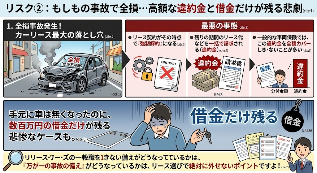 リスク②:もしもの事故で全損…高額な違約金と借金だけが残る悲劇