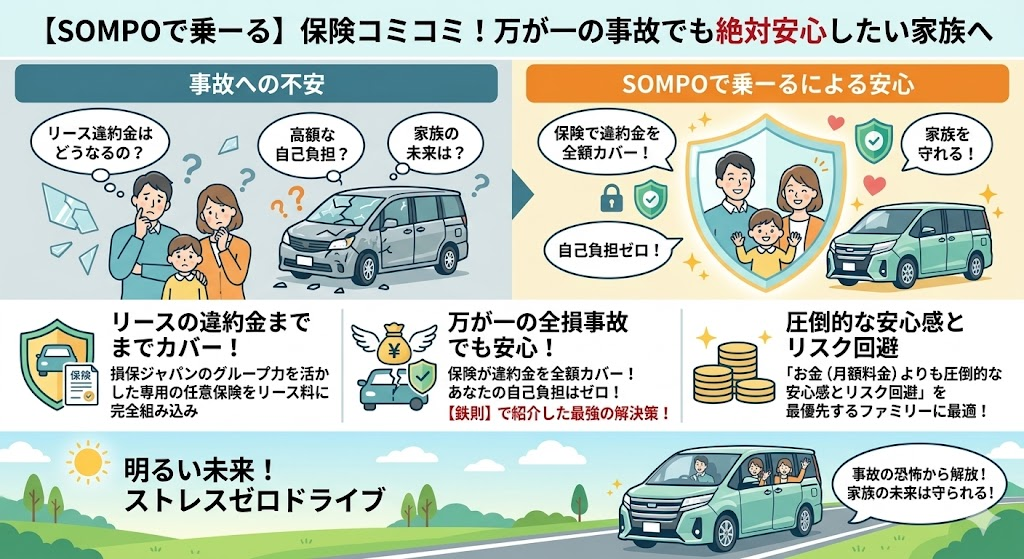 【SOMPOで乗ーる】保険コミコミ!万が一の事故でも絶対安心したい家族へ